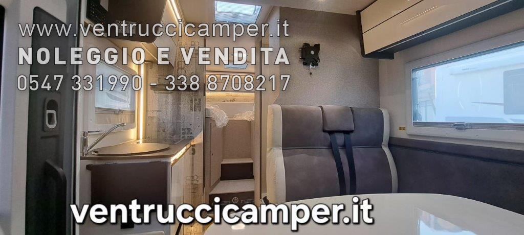 - Tetto panoramico, Copri lavello, Braccio TV, Fodere sedili coordinate alla tappezzeria, Pannello solare 200 w con regolatore MPPT, Oscurante plissettato